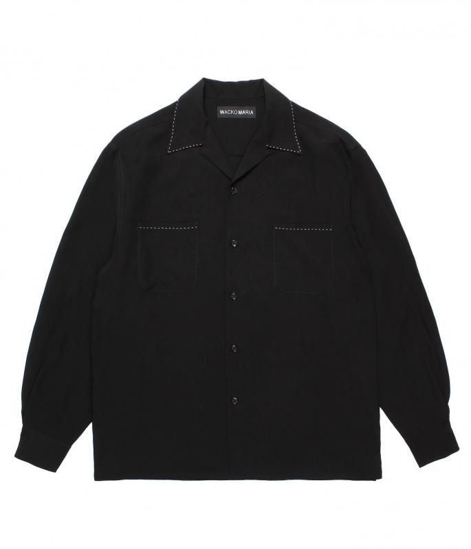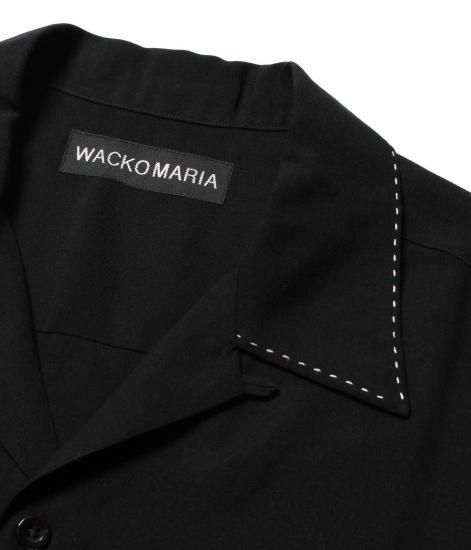 襟、ポケットにピンポンステッチが入ったオープンカラーシャツ。