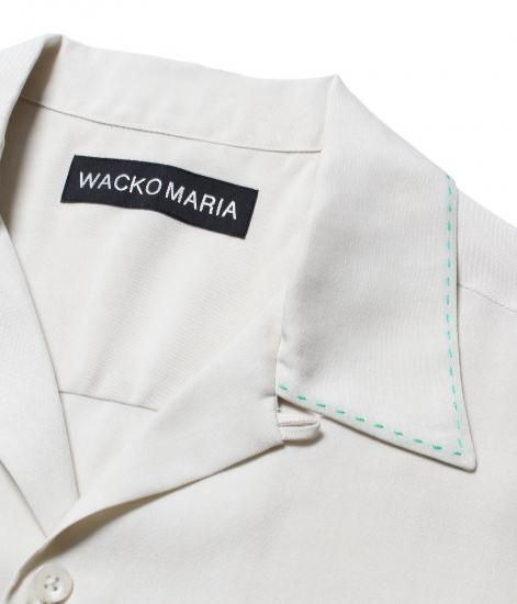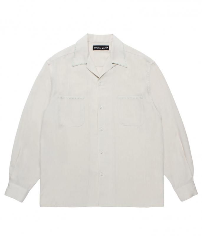 襟、ポケットにピンポンステッチが入ったオープンカラーシャツ。