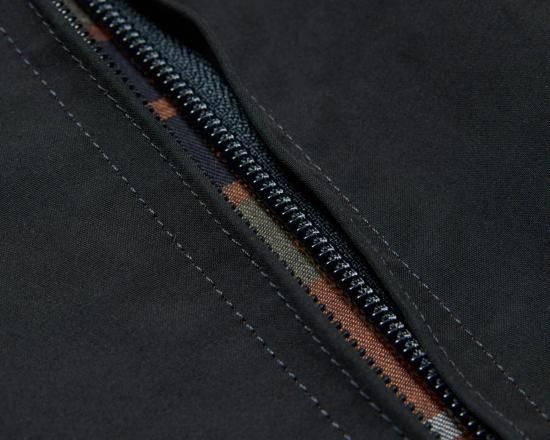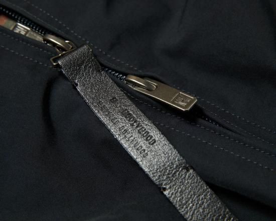 また、スライダーが噛まないように前立てに凧糸を内蔵するBARACUTAの仕様を採用。品質表示用のミニポケットは、あえてチェック側の後身頃リブ下に配置。