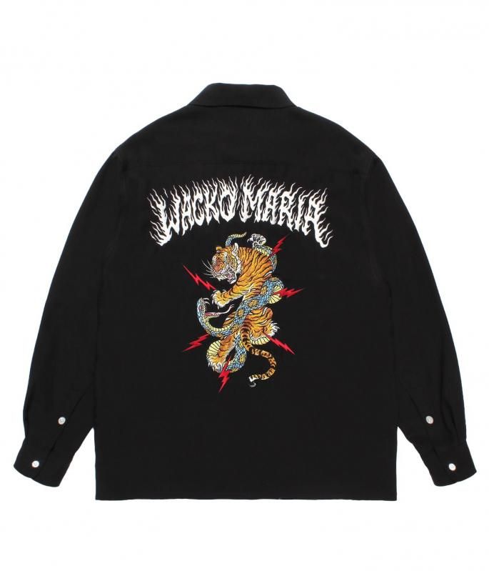 背中にTATTOOアーティスト ティムリーハイの描き下ろしデザインの刺繍が入ったオープンカラーシャツ。