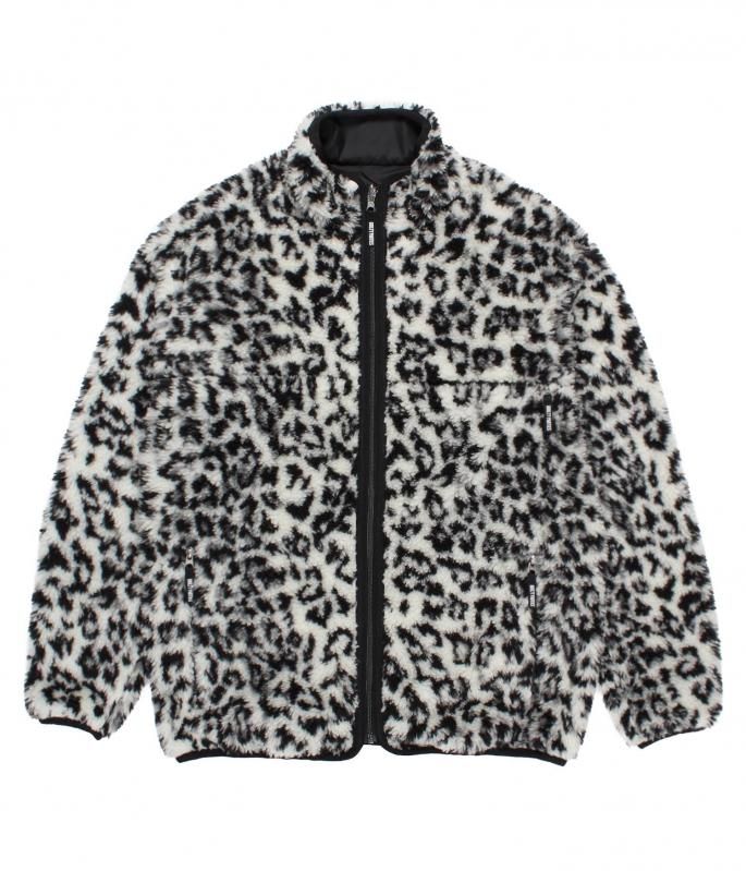 オリジナルレオパード柄を使用したレーヨン混のボアフリース生地と、