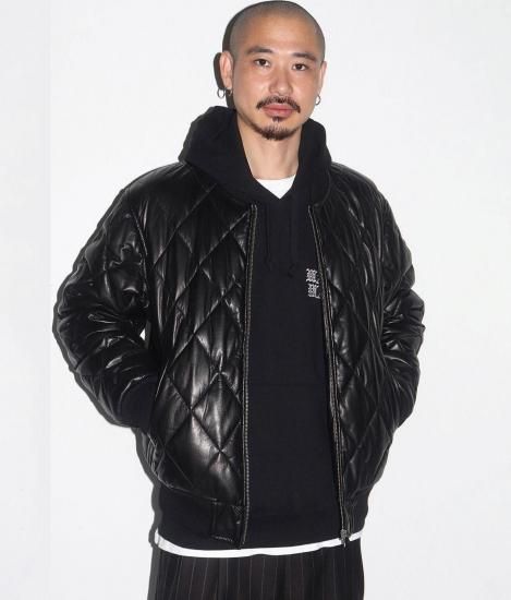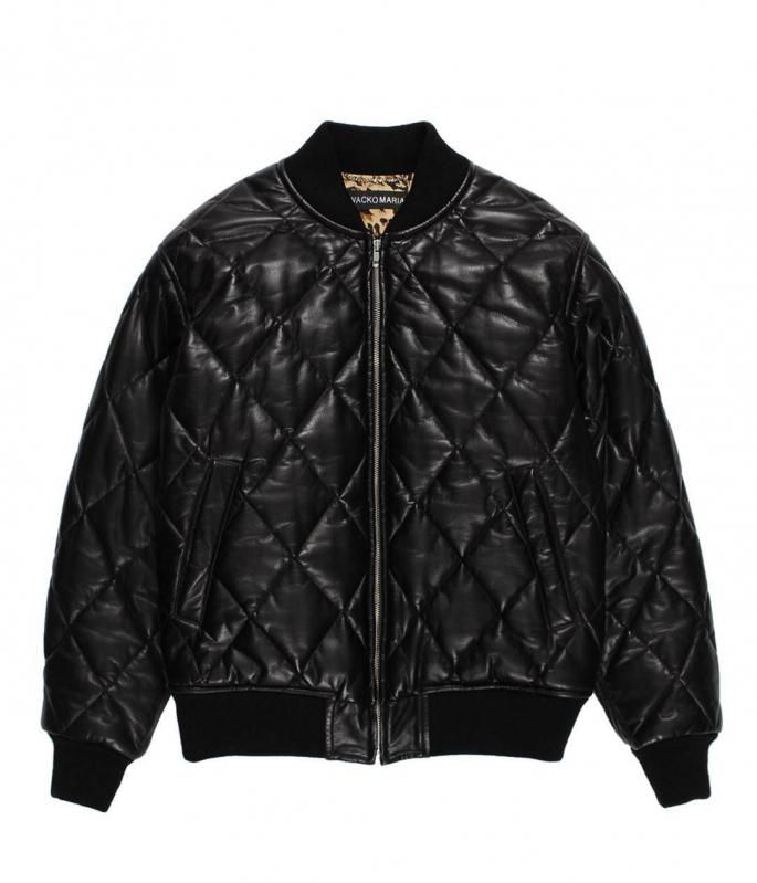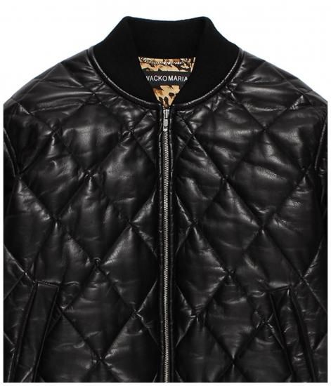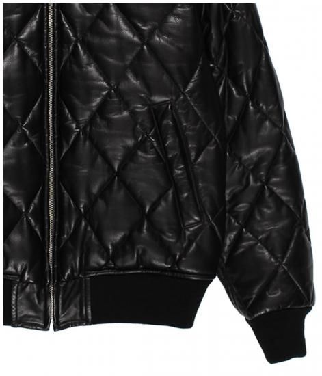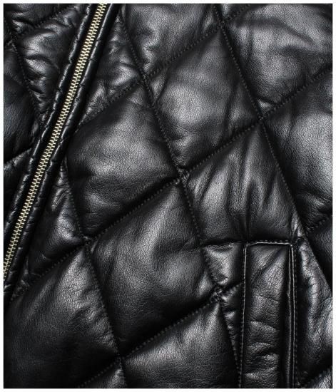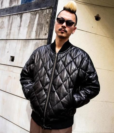 ダイヤモンドキルト加工したをレザーキルテッドジャケット。
