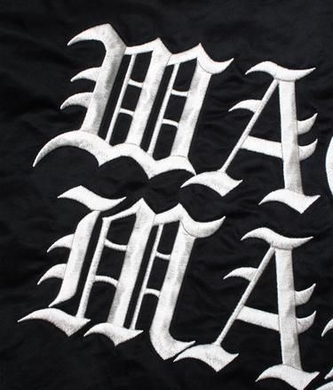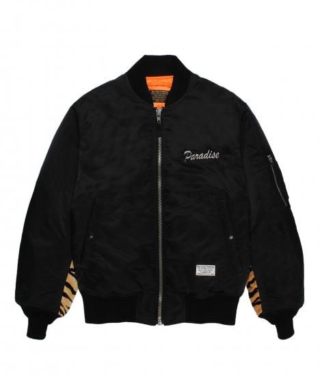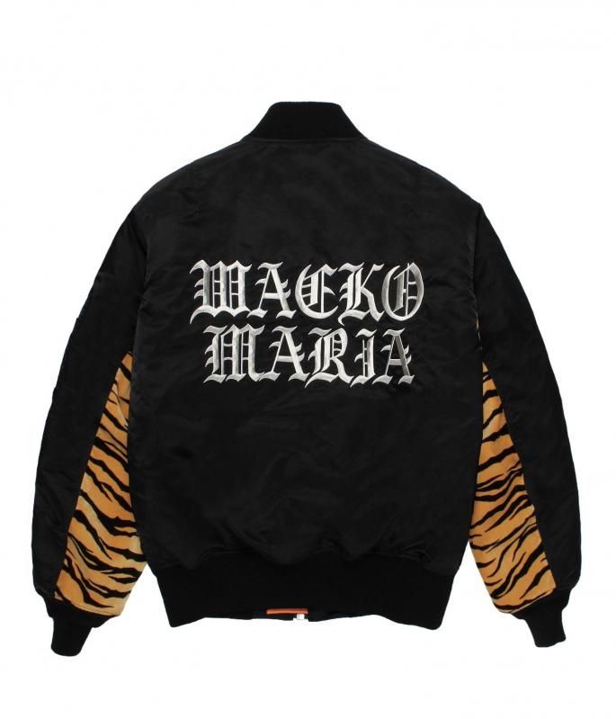 左胸、背中のロゴは刺繍、袖の切り替えはタイガー柄のベロア生地を使用しています。