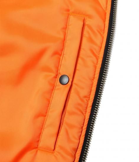 光沢のあるしっとりとした質感のナイロン100%生地を使用したMA-1フライトジャケット。
